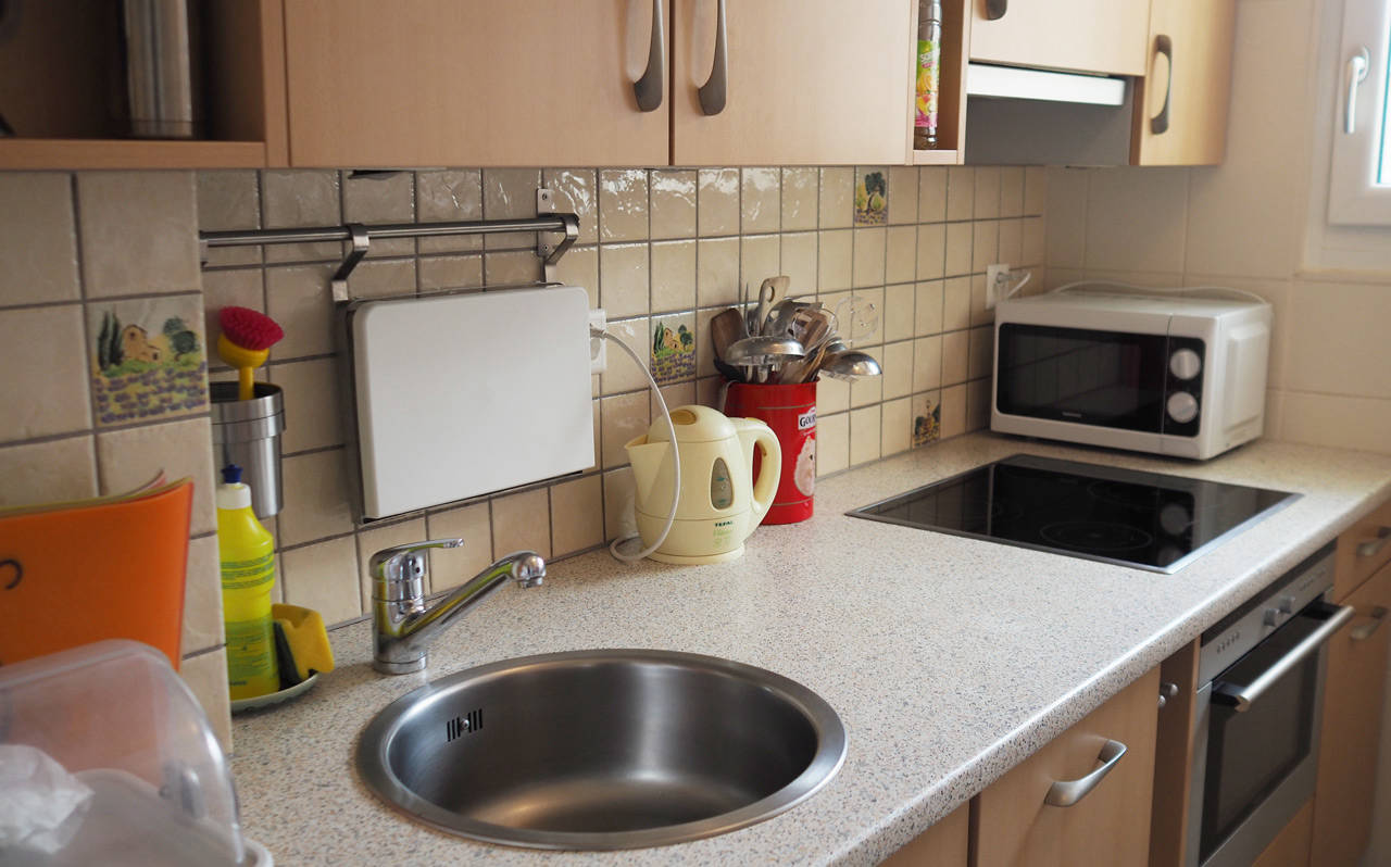 Avec cuisinière+four, micro-ondes, lave-vaisselle, grille-painréfrigérateur et congélateur, bouilloire électrique